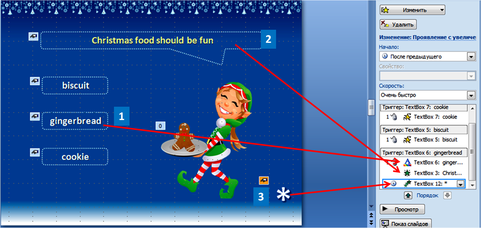 Установить эффекты анимации с триггерами на неправильные ответы. Установить нужный эффект анимации с триггером на правильный ответ так, чтобы он оказался последним в окне «Настройка анимации». Установить эффект анимации входа на управляющую кнопку (без триггера), если он окажется вверху в окне «Настройка анимации», перетащите его, зажав левой кнопкой мышки вниз, он должен быть самым последним - после эффекта с триггером на правильный ответ, триггер последнего запустит вход управляющей кнопки. См. прикреплённый файл.